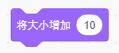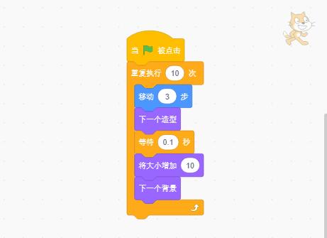 添加此指令,點(diǎn)擊后,我們可以看到每點(diǎn)擊一次,小貓大小增加10。或者也可以添加指令