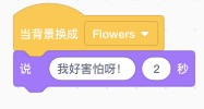 下面介紹背景變換指令操作,同樣我么假設一個場景,一只恐龍,在綠色的草地上休息,突然夕陽的余暉把草地染成紅色,嚇得恐龍大喊“我好害怕啊”!
