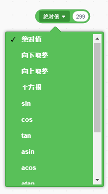 scratch的高級(jí)運(yùn)算指令集合再一個(gè)指令當(dāng)中,通過下拉選項(xiàng)來實(shí)現(xiàn)。