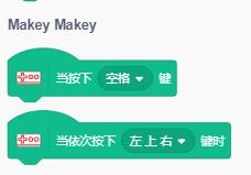 添加MakeyMakey擴展后,可以看到兩個指令代碼