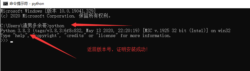 接下來在控制臺輸入python,如果返回python的版本號,那就證明python安裝成功,如下圖: