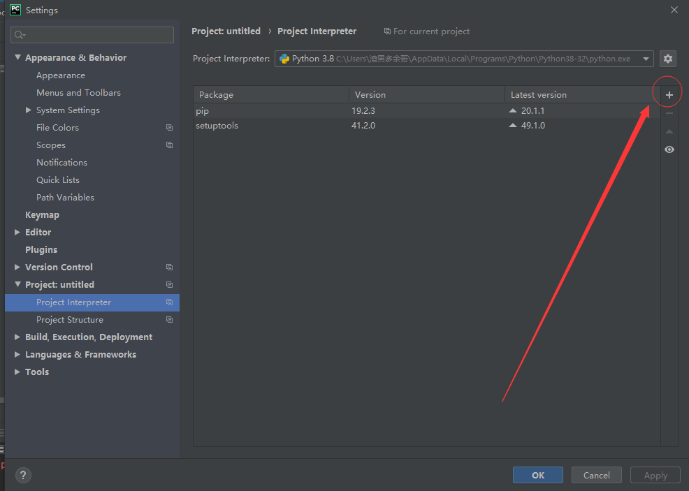 在啟動最后,不要著急創建新的工程,注意右小角的Configuer。點擊下拉框選擇設置Setting,在打開的窗口選擇project interproter