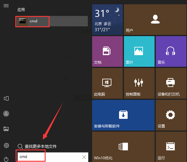 因為python的使用會用到命令行,因此掌握一些windows下常用的命令行操作是很有必要的。首先點擊windows開始按鈕,輸入cmd。如下圖