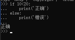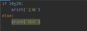有的時候我們需要根據(jù)條件來判斷輸出不同的結(jié)果。這個時候就要用到條件控制語句。條件控制語句的基本結(jié)構(gòu)是:if 條件:......表達式......else:......表達式......例如,我們來比較數(shù)字10和數(shù)字20的大小。如果10<20我們就輸出正確,否則我們就輸出錯誤。如下:我們看到輸出