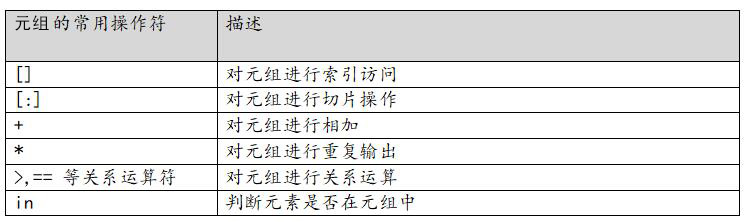 元組的操作符和列表的操作符一致,以下為簡單介紹: