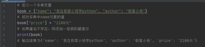 Python中字典的鍵名是只讀的,修改的是鍵名對應(yīng)的鍵值。dict[key] = valuekey表示鍵名,value表示鍵值。鍵名不存在時,會插入新的鍵值對。如果修改的鍵名不存在,則會新增個鍵值對,如下: