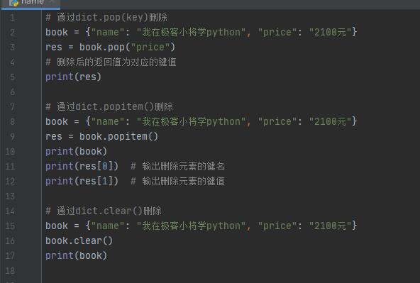 3、dict.clear():通過字典類型的clear方法來一鍵刪除字典中的所有鍵,無返回值。