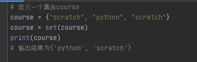 對集合進(jìn)行定義,主要有對象定義法和直接定義法。1、直接定義法直接定義法是指直接通過集合的別名符號{}來進(jìn)行定義。在{}中,鍵名以英文逗號進(jìn)行分隔。舉例說明:2、對象定義法,集合的對象定義法又分為兩種,以下分別介紹:(1)、set() :使用set()構(gòu)造一個空的集合。(2)