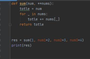 定義函數(shù)時(shí),使用**操作符對形參進(jìn)行修飾,在調(diào)用函數(shù)時(shí),Python會(huì)將該參數(shù)位置處開始的實(shí)參收集為字典類型。但是必須以關(guān)鍵字參數(shù)的方式來進(jìn)行調(diào)用。我們將上面的例子修改一下,如下: