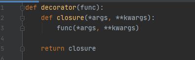 對welcome函數使用@login進行裝飾以后,Python會自動將wecome函數作為參數傳遞給login函數, 并執行返回的閉包函數,這是Python裝飾器的核心邏輯所在。裝飾器中的閉包函數參數須與被裝飾對象的參數一致,在不確定被裝飾對象的參數時,可以使用可變參數:*args, **kwargs。 使用可變參數的裝飾器結構: