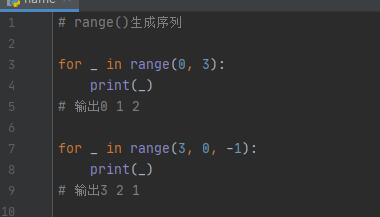 生成一個(gè)整數(shù)序列range(start, stop[, step]):生成一個(gè)從整數(shù)start到整數(shù)stop之間(不包含stop),且步長(zhǎng)為step的可迭代對(duì)象。參數(shù)start大于stop,且step為負(fù)數(shù)時(shí),可以生成一個(gè)逆序的整數(shù)序列: