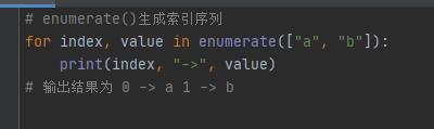 生成一個(gè)索引序列enumerate(iterable[,start=0]):enumerate用來(lái)為可迭代對(duì)象生成一個(gè)索引序列,索引默認(rèn)從0開(kāi)始。通過(guò)參數(shù)start可以設(shè)置索引的起始編號(hào)。