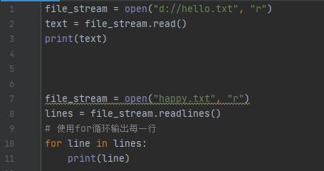 在執行open方法獲取文件流對象以后,可以直接使用for循環來對文件流對象進行逐行讀取。