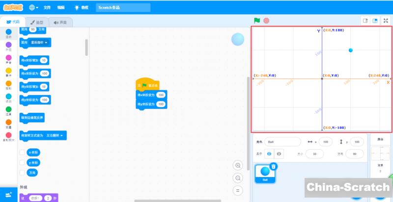 當(dāng)小球向右移動時,單擊外觀模塊,將