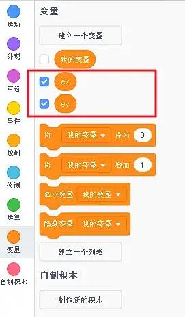如果按照之前的發射玩家子彈的方式編寫,是不可行的,因為玩家控制的飛機(craft_player)在整個屏幕中只有一個,而敵機(craft_enemy)是克隆體,在屏幕中可能同時出現多個。解決辦法是我們通過敵機克隆體發射子彈時向一個公共變量賦值,敵機子彈(bullet_enemy)的克隆體通過訪問公共變量進行初始化 首先我們在“變量”中“建立一個變量”,名字是ex