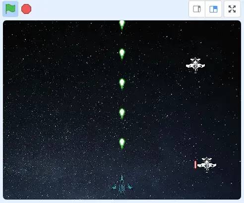 實際效果(無法以動圖方式演示),注意下圖紅框內子彈已發射至屏幕頂部