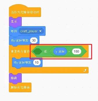 此時,子彈(bullet_player)角色在飛行中的重復執行條件需要進行更改 原來的積木組合如下
