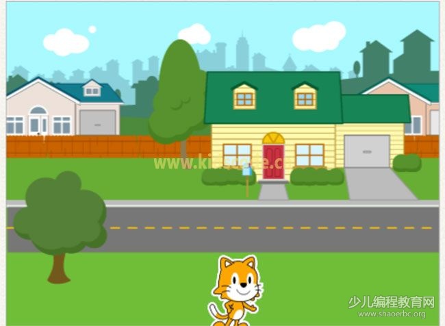 1、 打開app,新建項目,刪除默認的小貓角色,添加海灘背景,和兩個角色,小兔、螃蟹,并將兩個角色放置在舞臺左側同一起跑線上,如上圖所示。