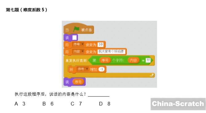 這道題相對(duì)難度較高,主要考驗(yàn)小朋友們的邏輯思維能力。且這道題并不能通過(guò)把程序帶入scratch 2.0里尋找答案