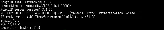 mongo --port 27017 -u "登錄名" -p "密碼" --authenticationDatabase "數(shù)據(jù)庫名"如果驗證失敗會在命令行打印如下信息YaG少兒編程網(wǎng)-Scratch_Python_教程_免費兒童編程學習平臺