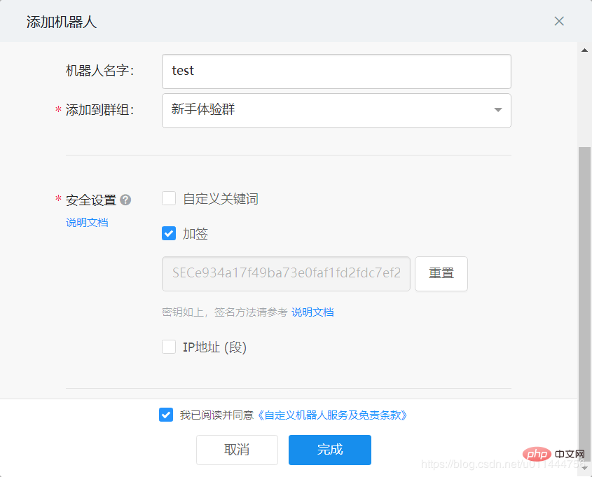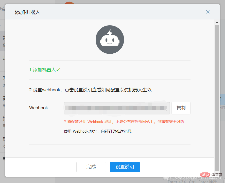 import requests #python 3.8 import time import hmac import hashlib import base64 import urllib.parse timestamp = str(round(time.time() * 1000)) secret = '加簽時生成的密鑰' secret_enc = secret.encode('utf-8') string_to_sign = '{} {}'.format(timestamp, secret) string_to_sign_enc = string_to_sign.encode('utf-8') hmac_code = hmac.new(secret_enc, string_to_sign_enc, digestmod=hashlib.sha256).digest() sign = urllib.parse.quote_plus(base64.b64encode(hmac_code)) print(timestamp) print(sign) url='生成的Webhook×tamp={}&sign={}'.format(timestamp, sign) print (url) headers={ 'Content-Type':'application/json' } json={"msgtype": "text", "text": { "content": "測試" } } resp=requests.post(url=url,headers=headers,json=json) print (resp.text)相關學習推薦:編程視頻Aza少兒編程網-Scratch_Python_教程_免費兒童編程學習平臺