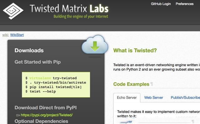 Twisted是一款事件驅(qū)動的網(wǎng)絡(luò)編程框架,支持許多常見的傳輸及應(yīng)用層協(xié)議,如TCP、UDP、SSL/TLS、HTTP、IMAP、SSH、IRC以及FTP。還支持Unix domain sockets,在MIT許可下應(yīng)用。Twisted附帶了一個可以web服務(wù)器上運(yùn)行的WSGI,它能夠?yàn)槠渌鸓ython web應(yīng)用程序允許開發(fā)人員使用的服務(wù)器定制HTTP服務(wù)。mI4少兒編程網(wǎng)-Scratch_Python_教程_免費(fèi)兒童編程學(xué)習(xí)平臺