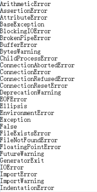 with open("a.txt","w") as f: for item in dir(builtins): f.write(item + ' ') f.close()