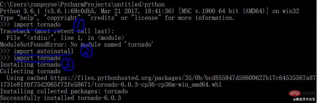 我們以tornado 為例,第一步操作可看出,我們沒有裝過 tornado,經過第二步操作后,再次導入 tornado 時,程序會幫我們自動下載并安裝好 tornado,所以不再報錯。ekR少兒編程網-Scratch_Python_教程_免費兒童編程學習平臺