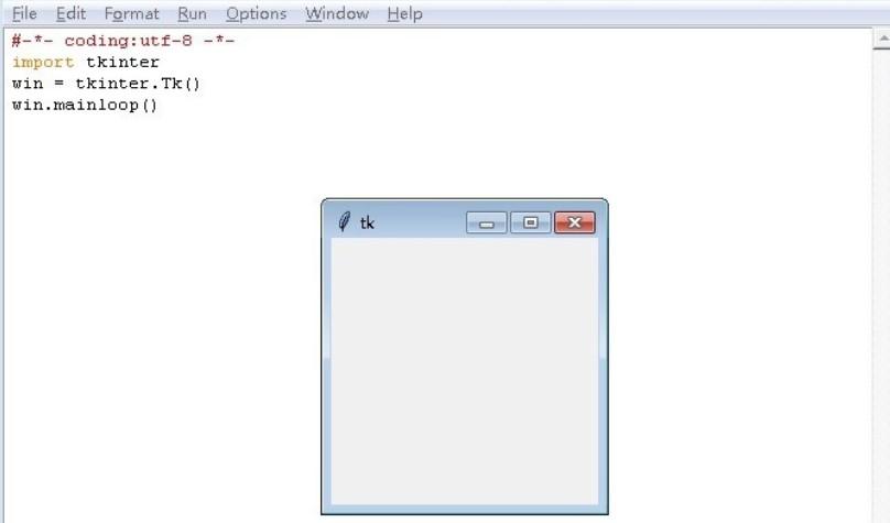 #-*- coding:utf-8 -*- import tkinter win = tkinter.Tk() win.mainloop()這里以python3為例,小伙伴如果還在使用python2,把tkinter換成Tkinter即可,否則報錯哦dMG少兒編程網(wǎng)-Scratch_Python_教程_免費兒童編程學(xué)習(xí)平臺