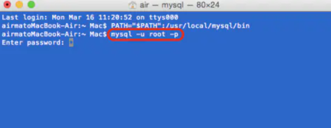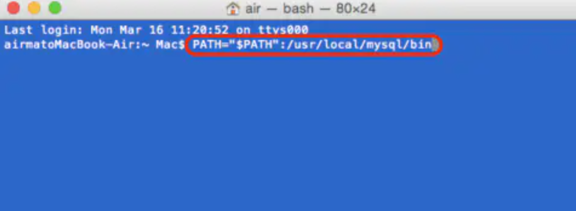2、在終端中輸入添加MySQL路徑的命令: PATH="$PATH":/usr/local/mysql/binl3B少兒編程網-Scratch_Python_教程_免費兒童編程學習平臺