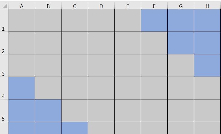 只要循環表示出綠色區域內的坐標 通過行列遞增即可表示斜線:erb少兒編程網-Scratch_Python_教程_免費兒童編程學習平臺