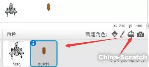 Scratch里的每一個對象都叫做精靈,如果我們想添加一個新的精靈,那么按如下方式操作: