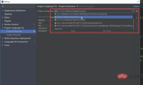 5、然后在右側(cè)的Project Interpreter的下拉框中選擇一個Python環(huán)境,這里一般會選擇自己本地的安裝的python環(huán)境,如下圖所示1eF少兒編程網(wǎng)-https://www.pxcodes.com