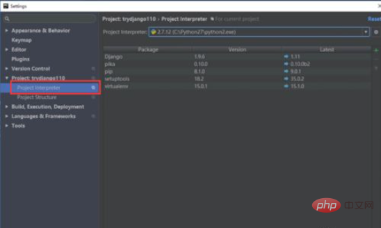 4、展開project選項(xiàng),選擇其下面的Project Interpreter選項(xiàng),如下圖所示1eF少兒編程網(wǎng)-https://www.pxcodes.com