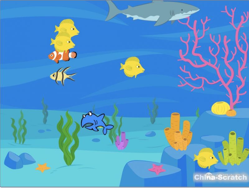 第一次給張江小朋友教scratch課程之前,還在擔心一些概念能不能向小朋友解釋清楚,可上完課發現,我嚴重低估了小朋友的聰明程度,發現現在的孩子相比較自己8、9歲的時候,簡直聰明太多倍了。 所以總結了半天,想著干脆來個有分量一點的項目,寫一個scratch版的大魚吃小