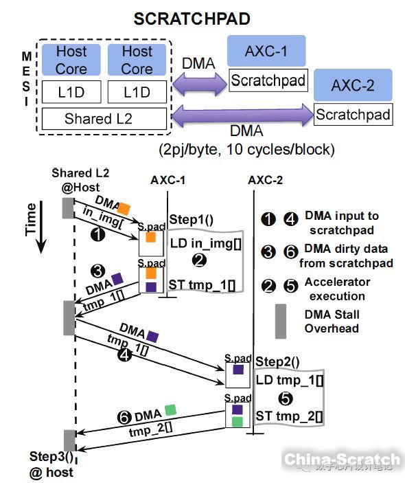 對于一些流處理單元(音視頻編解碼等),需要的數(shù)據(jù)比較集中且連續(xù)。如果讓這些數(shù)據(jù)進(jìn)入到Cache中,它們會(huì)把CPU需要的數(shù)據(jù)沖刷掉。而且,在較老的程序中,這些音視頻流數(shù)據(jù)不太會(huì)被CPU使用到。最早的SOC芯片中,數(shù)據(jù)流從采集接口(AD等)直接進(jìn)入編解碼單元,編碼完成后通過交叉互聯(lián)總線直接送