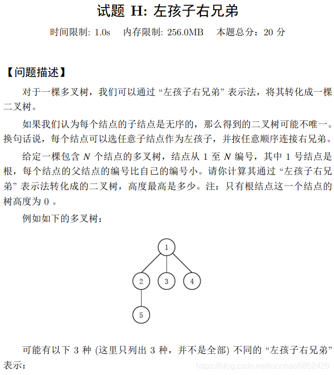 111234532345425其中最后一種高度最高,為4。【輸入格式】輸入的第一行包含一個整數。以下N-1行,每行包含一個整數,依次表示2至N號結點的父結點編號。【輸出格式】輸出一個整數表示答案。【樣例輸入】51112【樣例輸出】4