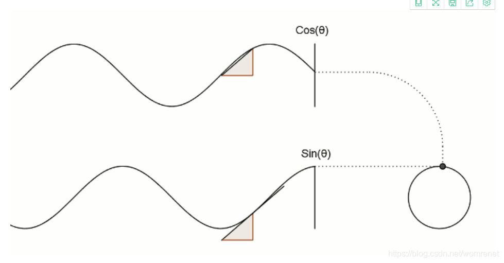 鐘擺小球的運動軌跡可以是看做是上下來回運動,以運動軌跡長度中心點分上運動和下運動,如果中心點為0,上運動路徑端點可以看做是1,下運動端點可以看做是-1,這就是sin和cos的值,其中sin()和cos()中的變量可以理解為角度,角度值是0到360度之間?如果角度=0,那么sin(0)=0,cos(0)=1,如果角度=90,那么sin(90)=1,cos(90)=0。由此就能借助sin或者cos函數來讓球做出鐘擺運動,看一下下面這個動圖大家就能明白他們之間的關系了: