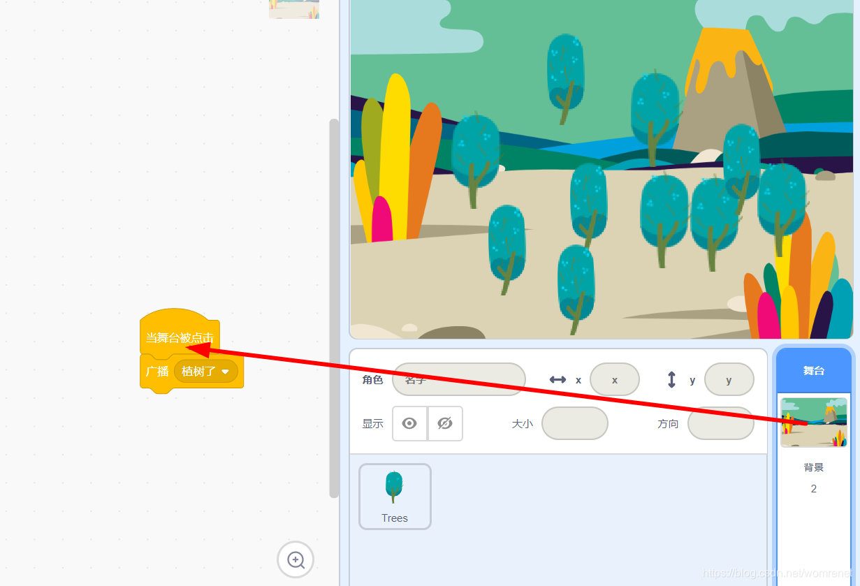 劇本介紹:每年春天我們都需要參加植樹(shù)活動(dòng),根據(jù)鼠標(biāo)所點(diǎn)的位置進(jìn)行植樹(shù)。代碼截圖:
