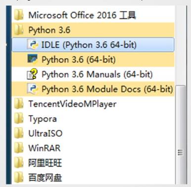 單,找到p->Python3.6->IDLE(Python3.664bit)