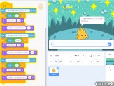 場景介紹:小貓沿著黑色線條自動移動。知識點:①嵌套條件判斷②顏色探測器,積木顏色碰到顏色的應用③繪制背景線條④編輯角色,修改顏色評價點:①點擊綠旗后,小貓能沿著黑色線條自動移動拓展練習:①增加移動的步長,測試小貓還能自動巡線嗎②繪制不同的黑線,檢查小貓還能