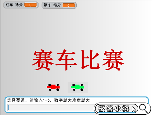 玩家可以選擇不同賽道級別,用鍵盤控制紅綠兩輛賽車進(jìn)行比賽。