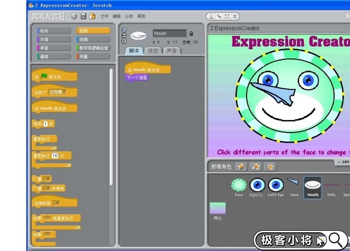 3 3 36同學們打開這個例子,看一看,輕松體驗一會兒,用你們的創意做一個更有趣的表情制造者。這一課的重點是探索:
