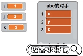 定義三個變量i 、j、k(假設a、b、c的對手分別為i 、j、k);新建列表,存入對手x,y,z,如下圖(將x,y,z分別用數字1、2、3代替),1、2、3分別對應x、y、z。