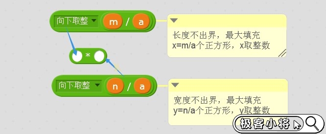 (2)長度不出界,最大填充x=m/a個正方形,x取整數。