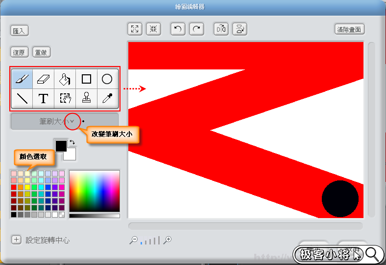 整個過程如上我稍后會解釋整個程序的細節首先在畫布上畫一條直線或一條曲線,然后在末端畫一個黑色區域。