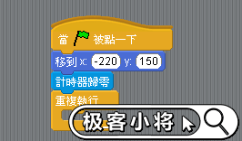 首先,通過分類來拖動控制命令,「當綠旗被點一下」到程序區,即點擊綠色標志時,程序執行移到x:y,即角色放在X3360-220,y:150。點擊檢測命令類中的計時器,很多計時器會在臺上不停計時。