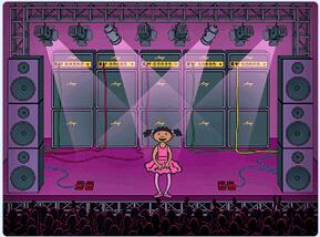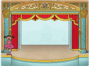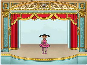 (1)點擊綠旗,角色Ballerina初始造型為ballerina-a,初始背景為Theater,初始位置在舞臺左側;