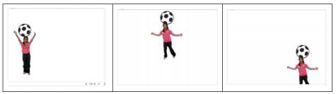 3、無論小女孩是否移動,足球都始終處于小女孩的頭頂。不用考慮足球是否遮擋 住小女孩的頭部,只要靠著就可以。參考下圖所示。