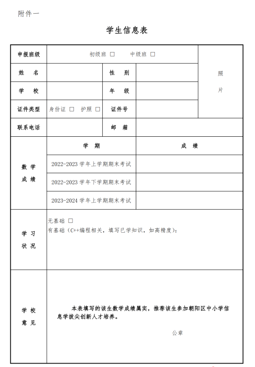 關于推進朝陽區中小學信息學拔尖創新人才培養招生工作的通知